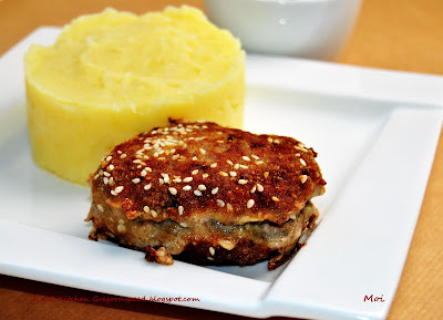 mieszance bułki tartej i sezamu. Smażymy na rumiano z obu stron.