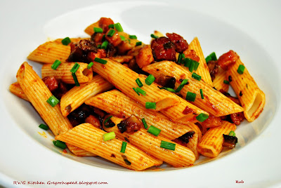 Połączenie makaronu z pieczarkami, boczkiem i pozostałymi dodatkami sprawdziło się. Wyszło szybkie, smaczne danie.